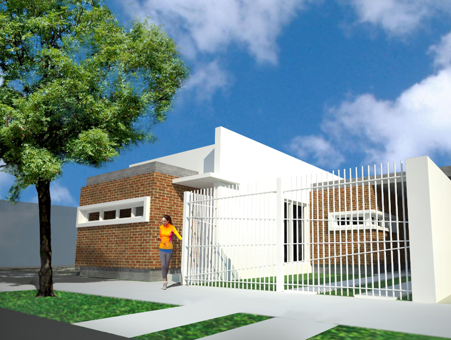La idea era realizar una vivienda + estudio en un terreno angosto y largo, por lo cual se tomó la decisión de pegarse a una medianera para así provechar el recorrido del sol (este/oeste) y tener la mayor cantidad de luz natural posible. Dentro del programa, ya que uno de la pareja da clases particulares de inglés, se necesitaba un estudio que fuese independiente del resto de la casa, pero que estuviera adentro, es por ello que se coloca en la línea municipal y justo en la entrada principal de la casa. Luego está el área publica: living, comedor, cocina y lavadero con salida hacia el patio –garaje. Siguiendo con el área privada: baño, dos habitaciones y la habitación principal con baño en suite.